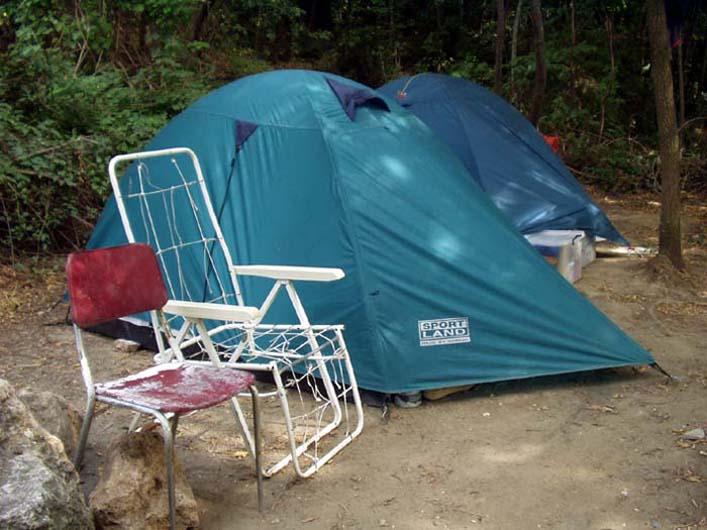 Kromě toho vína jsme měli plné auto krabic s krušovicemi, které ale brzo došly, takže pak sloužily jako stoličky, dokud je nerozmočil déšť. Naštěstí ale Brto bufeťák brzy obkoukl všechny místní kontejnery a tak se u našich stanů postupně vršila špinavá židlička, kterou pro jistotu obalil novinama, aby vypadala echt sockoidně, kovové křesílko s upadlým polstrováním a rákosová židlička která se po prvním usednutí ještě více rozpadla. Bohužel jsme měli narvané auto k prasknutí, tak jsme je tam museli nechat, ale Brto rozhodl, že příště pojedeme bez všech věcí a s přívěsem. Protože už známe ta správná místa, zaplníme postupně přívěs matracemi, roštem, židličkami, bicykly s píchlými pneumatikami, rozbitým skútrem, malinkatým náklaďáčkem bez baterky a skleněnými demižóny s rozpadlým opletem. Prostě Itálie je ráj bufeťáků.