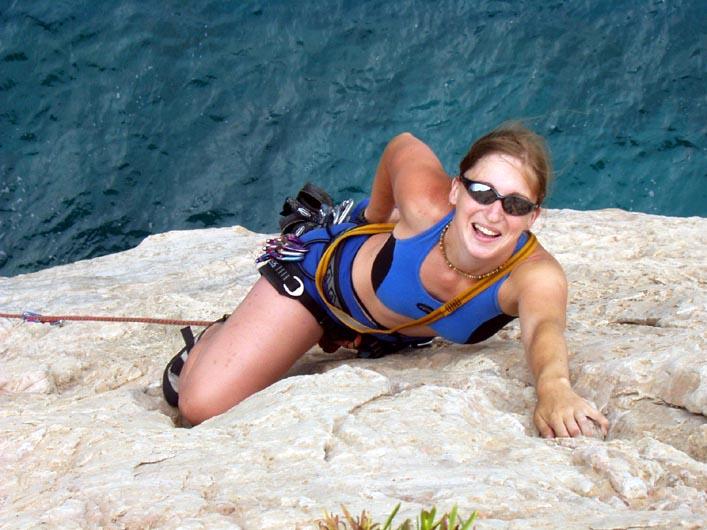 Tahle výprava probíhala zcela v odpočinkovém duchu - já měla vyvrtnutý kotník, Milda nelezl dva roky a Péťa jednou v životě. Brtovi tak nezbývalo než vzpomínat, jak si krásně zalezl s Komárem v Paklenici, ale našemu ležérnímu stylu se nikterak nebránil. Ten spočíval v tom, že když ráno všichni odcházeli do skal, my jsme teprve ospale otvírali oči, v jedenáct jsme se dovlekli do skal, tam jsme až do pozdního odpoledne umrcasovali asi tak tři cesty, pak jsme jeli na zmrzlinu, koupit víno a koupat se v moři.