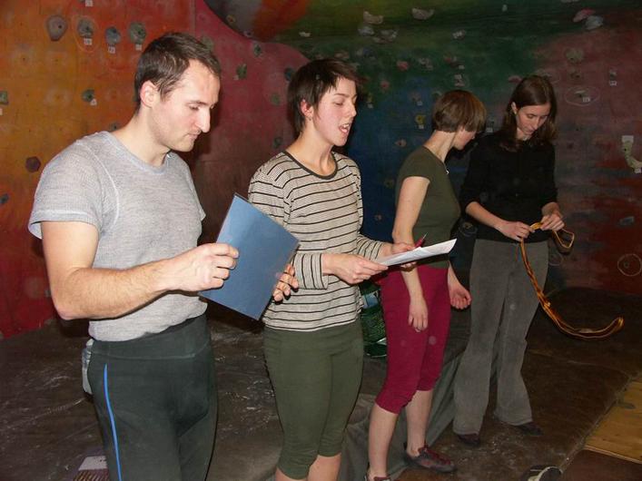 V čem byl jiný nežli loni? Zdá se, že to s humanitními muži není tak zlé, jak by se snad na první pohled zdálo. Díky vyhlášení nové kategorie notoričtí nelezci a rakváči se do závodů přihlásili takové osoby, které potkáte na umělé stěně s přibližně stejnou pravděpodobností, s jakou narazíte v Himalájích na Yettiho. Ano, už jistě tušíte že mluvím o tzv. svaté Trojici z Kozácké ulice - Tokovi, Sejkovi a Savcovi. Aneb jak psal Tok v jedné esemesce, jednou i slunce vyhasne, peklo zamrzne, vesmír zanikne a Tok přijde na umělou stěnu. Ta chvíle tedy nadešla minulou neděli. Tuto pestrou skvadru pak ještě doplnil stejně proslulý Pojídač a známý pražský prášil a cestovatel Vrána. Zklamal jedině Oveček, který nedorazil. Na druhou stranu se jistě ulevilo organizátorům, kterým se nepodařilo zajistit dodatečný podpěrný systém umožňující startovat i takovýmto váhovým kategoriím.