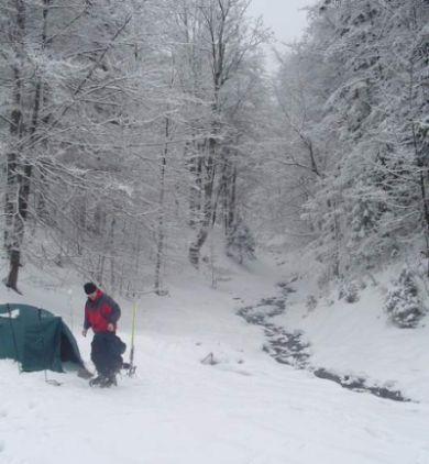 Když se po pás brodím sněhem, batoh mě tíží a lyže s hůlkami se zasekávají ve sněhu, dojde i na volání maminky. Holka, seber se, za chvíli to přejde, uklidňuji se. Jenže co přejde? Za chvíli leda tak zastavíme na nějakém palouku, ale zima, mráz,sníh a totálně prochcané oblečení až do nejspodnějších vrstev, to rozhodně jen tak nepřejde. A opravdu, za chvíli stojíme na planince u břehu malinkého potůčku. Místo, které bych možná za jiného stavu nazvala romantickým, mi teď připadá jako totálně neobyvatelné. Padá konečné rozhodnutí, že tady budeme trávit Silvestr.