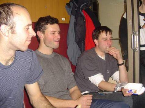 Pár minut po srazu se všichni pomalu slézáme a tvoříme obrovskou hromadu baťohů a lyží, kterou s úžasem pozorují i místní nádražní obyvatelé. Díváme se na ně s mírnou odtažitostí a netušíme, že za pár dní jim v pachovém projevu budeme rovnocennými partnery. Podle nepsaného pravidla někdotenvlakdobíhatmusí zanecháváme na místě srazu jen Martina, aby zpozdivšího se Píťu nasměroval, a vydáváme se zabydlet svá coupé. Začátek dobrý, všechno dobré. Oba zmínění přibíhají a vlak vyráží směr Ružomberok, netuše, že kdesi za lokomotivou táhne jedenáct šílenců toužících po mraze, sněhu, mlze a dešti. Těmi se pro tento rok stali Bidlo s Beruš, Turci 2x, Omarek s Madlou, Martin, Píťa, Zbyněk, Radek a Bára. V Ružomberoku v nekřesťanskou hodinu provádíme výsadek a narážíme na posledního člena výpravy, Komára.