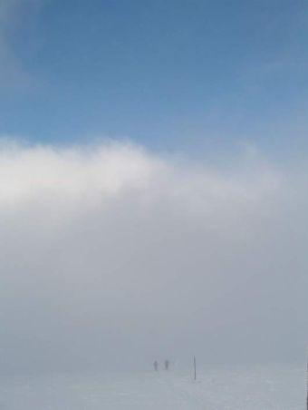 Zbytek dne se nese v duchu nahoru dolu nahoru dolu mlha sníh mlha. Velkým zpestřením je ale závěrečný sjezd k boudám, kterýžto vede velmi prudce úplně mimo nějakou cestu mladým lesíkem.