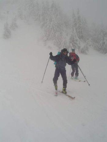 Zbytek dne se nese v duchu nahoru dolu nahoru dolu mlha sníh mlha. Velkým zpestřením je ale závěrečný sjezd k boudám, kterýžto vede velmi prudce úplně mimo nějakou cestu mladým lesíkem.