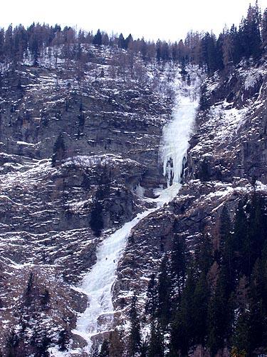 Naštěstí přišla neděle a šli jsme na plezír a genuss. To jsem si zase užil já. Několik kaskád na potoce Strannerbach bylo odděleno pochodovým terénem, výborné možnosti jištění o stromky i ledovcovými skobami. Byl tam sice provoz, protože je to dlouhý a krásný lehký led, ale moc nám to nevadilo.