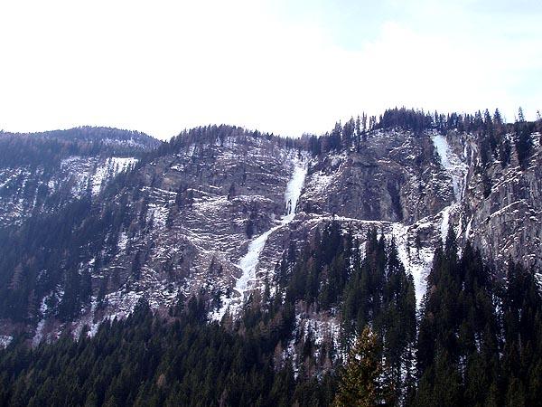 Naštěstí přišla neděle a šli jsme na plezír a genuss. To jsem si zase užil já. Několik kaskád na potoce Strannerbach bylo odděleno pochodovým terénem, výborné možnosti jištění o stromky i ledovcovými skobami. Byl tam sice provoz, protože je to dlouhý a krásný lehký led, ale moc nám to nevadilo.