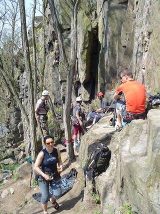 A co dál se dá na Rovišti vidět? Pupkaté fotříky bez helem pitomě pérující své ratolesti (taktéž bez helem). Lukáše Bludského, který si do pádu prvního šutru připadá s blembákem jak idiot, ale pak ho to přejde. Renču statečně bojující v komínu, do kterého jsem nikdy neměl kuráž nalézt. Předsedu se svetrem. No a po lezení...skvostná večeře u Bludských, díky Jitko!