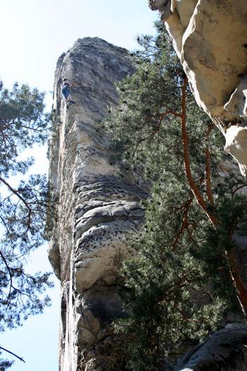 Brto se celkem překonával a většinou lezl, místo toho, aby se válel dole pod skálou. Večer měl jen dvě piva, takže nedošlo na předvedení oblíbeného kousku zvaného dýchání jako pářícíse pes. Také si vzal s sebou do stěny foťák a díky tomu se mu podařilo zdokumentovat celou škálu emocí, která se Thomasovi zračí ve tváři při dobývání pískovcových kruhů.