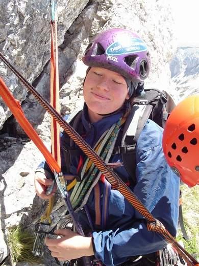 Gedaechtnis Weg, psáno jako 6 A0 nebo 7-. Bylo to hustý! Prvni délku jsem zkoušel třikrát, urval jsem chyt a nezdolal. Pak jsem do ní pustil Radima a protoze je silný jak silnice, přelezl ji. Ve třetí délce jsem se zase snažil já, plotny čistě za 7- byly drsný, tož jsem je velmi mírně oprasil. Přelezl jsem nejtěžsí místo, vymakal sokolíka, po páté expresce mi došlo v dalšímm sokolíku magi a letěl jsem 5 metrů do nejtu. Oklepal jsem se, nalezl to ještě jednou a zase jsem letěl. Tak jsme i zbytek cesty nechali natáhnout Radima a vezli se. Jinak jsme byli pobaveníčko pro celou chatu, protože do cesty je krásně vidět od pivka z terasy....