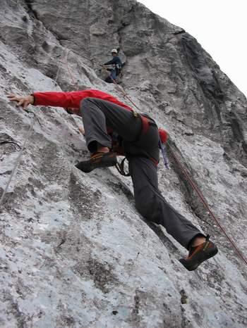 W.K. se letos celkem vydařil, i když jsme nevylezli všechno, co bylo v plánech. Ve čtvrtek jsme přeběhli Westwand na Predigstuhl - Fiechtl/Weinberger VII- (V+/A1), 200m, první dvě klíčové délky jsou po nočním dešti mokré, nejtěžší délku lezu A0. Přesto se nám daří lézt čistě alespoň do šestky. Slanění z hl. vrcholu Botzongovým komínem 6x20m, svítí odpolední slunce,sestup už asi po desátý Steinerne Rinne dolů na chatu Stripsenjochhaus.