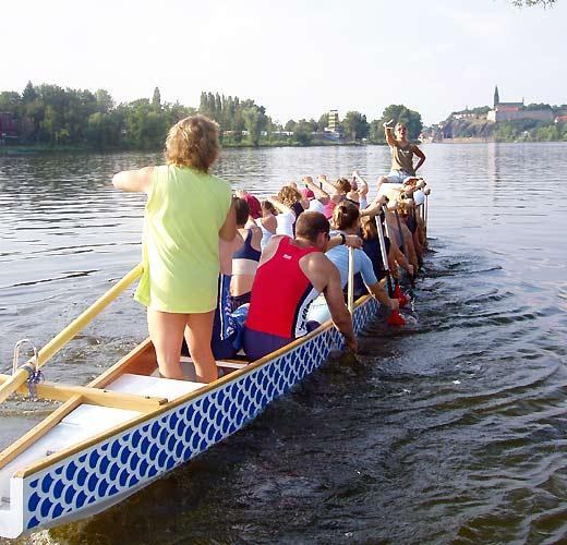 Fotka je z minulého týdne, kdy se proháněla spolu s dalšími děvčaty se širokými rameny za zvuků otrokářského bubnu na Vltavě pod Vyšehradem.