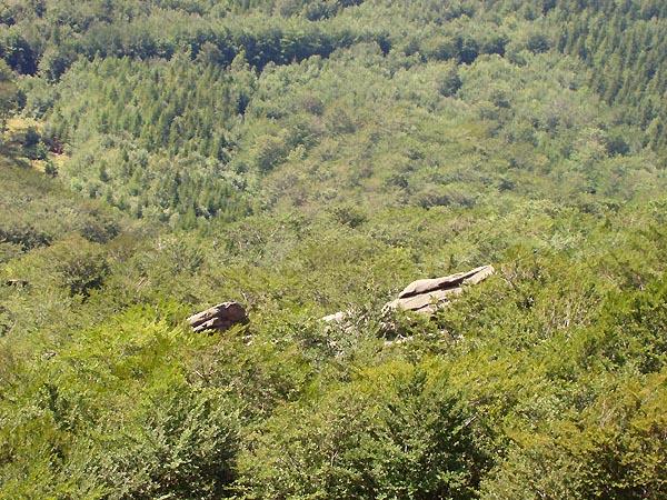 Jak je známo ani technika není neomylná a tak Kohoutí hřeben se ukázal být něčím úplně jiným. Pojídač furt vlastně vykřikoval něco o Liščí skále a celou dobu nás podezíral, že si z něj děláme dobrej den. Že by za to mohli ti geodetové před 15 lety? Po dalších spoustě výškových metrů, překročených kořenů a Kádinejch odřenejch kotníků jsme konečně dorazili na Paličník. No, po turistické cestě bychom tam byli už asi před hodinou a škoda, že to taky ani nebyl náš původní cíl. Nicméně kvantum naprosto modrých a obrovských borůvek ušetřených mamonuchtivých sběračů nám to všechno vynahradili. Taková Káďa si jich i spoustu odnesla domů na zadku!