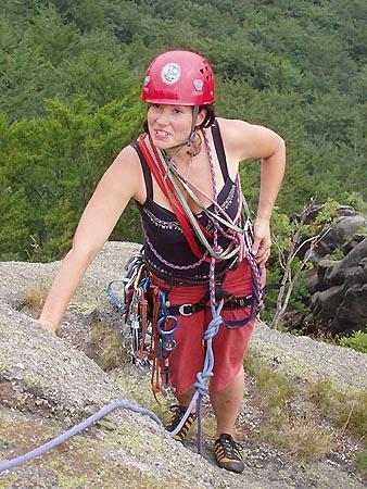 Po několika Kubových hýkavých pokusech jsme síly rázem spojili a s žaludkem v krku, očima navrch hlavy a Kubou pod zadkem jsem se po těch vertikálních mikrokrystalech nakonec vydrala, ale byl to boj. A pětka to taky nebyla. Nebýt Kubových očí na mých nohách a jeho ruky pod nimi... Družstva už jsme nerozpojili a Kuba se pokusil stěnku také dobýt. Po chvíli se v něm však probudili zkušenosti horala a chvátil lano. Káďa je horal již dávno zkušený a tak nezaváhala ani na okamžik a byla nahoře v cuku letu. Pojídač dal taky pokus a pak odevzdaně chvátil. Slaňák byl umístěn velmi rafinovaně, ale oproti předešlému, už slanění nestojí za řeč.