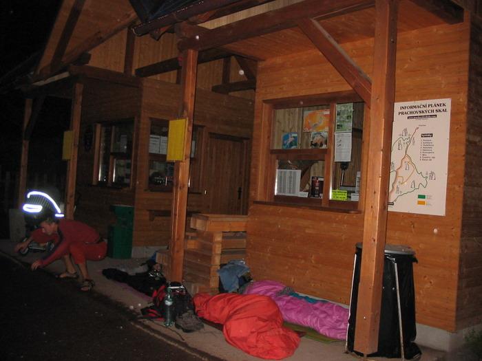 Za nočního blikotu baterek dáváme ještě 3 méně obtížné cesty a pokračujeme do již plného kiosku, který je tuto noc otevřen až do rána. Na kytaru tu pořádně kalí mlaďoši z LKP a je jasné, že ta stovka vybraná jako startovné bude zítra dobře využita.