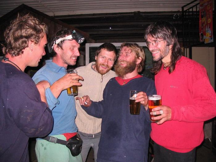 Za nočního blikotu baterek dáváme ještě 3 méně obtížné cesty a pokračujeme do již plného kiosku, který je tuto noc otevřen až do rána. Na kytaru tu pořádně kalí mlaďoši z LKP a je jasné, že ta stovka vybraná jako startovné bude zítra dobře využita.
