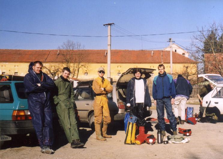 Mnozí z vás už jistě tuší - dlouho plánovaná výprava do podzemí začíná. Oveček se rozhodl, že zbloudilým lezeckým duším ukáže ten správný sport, zábavu, svět. Vzal si k ruce svého bratra Vlastu a jako první pokusná zvířátka si vybral Lucku (sestru v triku, momentálně v mnoha dalších vrstvách oblečení), Milana (co je nováček a tak si možná myslí, že v Humanitě se pořádají jen humánní akce), Tondu (který by měl mít z práce na stavbě metra podzemních tunelů dost, ale asi nemá) a autora tohoto článku. Další slibný adept Kuba si místo výletu leží v nemocnici. Jako pokusný terén mu poslouží propast Čeřinka. Není v Českém krasu ani největší, ani nejhlubší, ani nejkrásnější. Je prý nejzabahněnější. Alespoň nějaký primát.