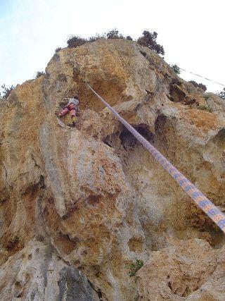 Pro ty kdo diskusi minuli: od 30. do 13. září jsem se svou maminkou(56let,6a+TR bez odsednutí:)strávila na skalnatém a hornatém ostrůvku v Řecku, na Kalymnosu. Před cca 8 lety zde byl na dovolené italský horolezec se svou manželkou a když spatřil obrovský potenciál zdejších skal,hořce litoval, že s sebou nemá matroš...Za rok se vrátil se svojí lezeckou školou a dnes je na Kalymnosu asi 600 dobře odjištěných cest v 30 sektorech. Dle mé nevědecké úvahy skoro všechny sektory vznikly při velkém zemětřesení asi 600 let AD, kdy se propadlo pod moře tehdejší hlavní město a krápníkovým jeskyním upadla část stěn.Tak to tam aspoň vypadá. Materiál je tedy vápno, někde už začíná být lehce oklouzané, ale to opravdu jen v zlomečku cest. Moc pěkné musí být převisy s krápníky, do těch jsme se bohužel moc nepodívaly, obtížnost od 7a. ALe i tak jsme si zalezly parádně, celkem asi 35 cest, nejvíce 6b(při prvním pokusu o jedno takové jsem do toho mámě slétla dobrých 2,5m nad borhákem, docela dramatické,ale spadla jsem jak do peřinky:) Někde je skála trochu ostrá, ale to je většinou v průvodci uvedeno(nebo to poznáte z názvu cesty-třeba Sharp things:)Průvodce je docela potřeba, ani ne tak kvůli cestám, jako kvůli přístupu do sektorů. Místní jsou si toho vědomi a tak nasadili nekřesťanskou cenu 30 Euro.Ach jo. Občas jsem měla pocit, že se na nás koukají jenom jak na chodící peněženky.