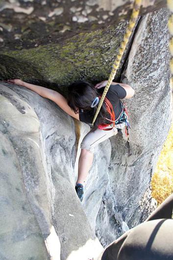 Naštěstí nám počasí přálo a na víkend v Mukařově se k velkému překvapení všech účastníků a oproti všem tradicím udělalo hezky. Abychom tedy nevozili matroš v autě jen tak na projížďku, vyrazili jsme směr Drábky. Ve složení já, Brto a Kláruše jsme sice nedali ani polovinu cest jako Gobo, zato jsme si po troše hledání našli tři opravdové lahůdky a lezení ve zdejší lokalitě se nám moc zalíbilo. Nevím, jestli jsme měli kliku ale přišlo nám, že kruhy tu jsou ve snesitelné výšce i hustotě, smyce se dají zakládat hojně, chyty jsou velké a materiál relativně pevný (je fakt že jsme byli v létě několikrát lézt na Hrubici a tak je pojem pevnost velmi relativní).