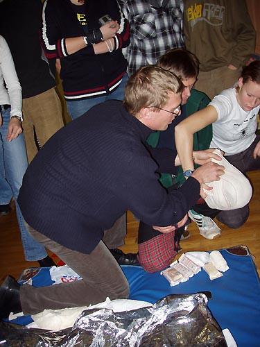 Pár fotek z nácviku první pomoci v tělocvičně.