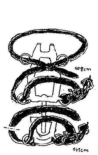 Malá noha působí v mačce další problém, a to prolézání špičky boty mačkou dopředu. Řeší se to buď improvizovaně prapodivnou sítí z tenké smyčky, nebo lépe doma v teple přidáním ohnutého drátu, stejného, jaký má mačka za patou na obr. 3., nebo se to řeší provrtáním základního plechu mačky vpředu a nanýtováním zarážky pro botu, což bych doporučil popelkám u jejich vlastních maček.