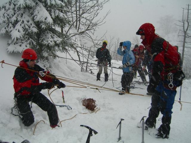 Několik nepříliš kvalitních fotek z nácviku zachraňování z ledovcového potůčku, lezení po ledech a ranního vstávání.
