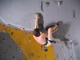Pánové nastoupili do kolmého profilu (obtížnosti cca 6+/7-) a z 16 startujících jich plných 11 topovalo, včetně Janka, který se neuvěřitelně zlepšil a odmítl startovat v dětské kategorii (bohužel by neměl s kým závodit). Kromě ostřílených soutěžících (Pionýr, Blud, Brto, Hoe, Thomas, Bidlo, Komára další) se letos zúčastnil i vysoký počet nováčků a někteří se vedli velmi dobře, obzvláště musím jmenovat Filipa Jareše, který publikum rovněž ohromil svým fakírským převlekem. Ani rozložitý turban mu nebránil podat výborné výkony.