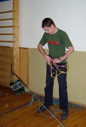 Ještě pár fotek z nácviku tahání z trhliny, které skončilo památným zamotáním Butruse do prusiků metr nad podlahou tělocvičny a jeho půlhodinovým bojem o život.