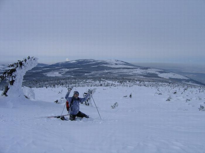 neviděla celý hřeben Krkonoš pěkně ze severu a nemohla tak mávat Lukáši, který ho zrovna sjížděl!