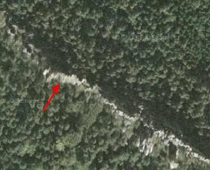 obrázek 6: a tady se láme chleba! je to vlastně nefér, kdo tam nelezl nebo nesvačil pod skalou, ten nemá mnoho šancí. a tady je potřeba pojmenovat správně oblast, věž/masiv i cestu - je to šestka, dlouhá 40 metrů, má čtyři kruhy a je fest lámavá, solivá a zahliněná.