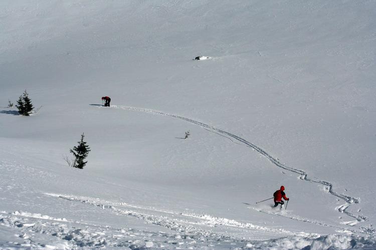 Další pěknou historkou se může pochlubit Jirka Kamrád. Během sestupu z Malého Kežmaráku dolů do tuším že Huncovské doliny směrem ke Svišťovce už překonal spolu s Tomášem Korčem nejstrmější část sněhového pole a byli už téměř na dně, když tu se utrhla sněhová lavina. Tomáš ještě stihl uskočit, ale Jirku to už vzalo s sebou. Když se pokoušel nějak hýbat a plavat (jak se doporučuje), začal se do ní propadat hlouběji a tak mu nezbývalo než se natáhnout a čekat co bude. Lavina naštěstí nebyla tak moc hluboká, ale po cestě to vzala přes pár skalisek a Jirku o ně nešetrně osmýkala. Takže skončil sice neudušený, ale s pochroumaným kotníkem. Lukáš s Kubasem si pak brousili zuby na to, jak ho budou svážet dolů na kanadských sáních.