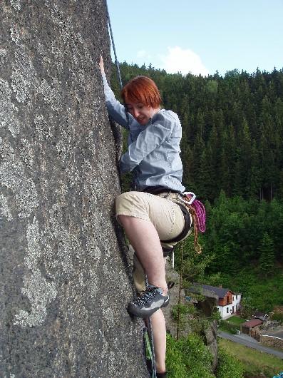 Vedro bylo vskutku kruté, takže jsme po většinu času lezli schovaní ve stínu skalních borovic na Muzikantech a v neděli i na Zámku. Většinu z nás, kromě Pionýra, docela nepříjemně zaskočila obtížnost zdejších cest, takže poté, co jsme já i Zahrada zapytlili rozlézací čtyřku, strávili jsme zbytek akce ve vláčku, vedeném lokomotivou Pionýrem.