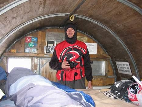 Cesta do bivaku nám trvala přes šest hodin. V poledním vedru, po skále, po suti, v trase pádu převislých séraků i ve sněhu. Každý si prožil své. Já se ošklivě spálil, Michala bolela hlava a Pojídač dorazil takřka na pokraji svých sil v menší agónii. Do večera jsme spali a odpočívali. Bivakovací bouda je velmi stísněná, oficiálně pro osm lidí, v deset večer dorazili dva skialpinisté a po jedné v noci ještě jedna německá dvojice. Jen co přestali šramotit, my začali vstávat a balit. Byly dvě ráno. Báli jsme se lavin a kamení a proto jsme vsadili na rychlý sólový noční výstup. Ve 3:30 jsme stanuli pod nástupem a začínáme za slabého svitu čelovek ukrajovat první metry nástupového kužele. Kde je odtrhovka? Voe, už jsme nad ní, konstatuje suše Mišo. Ptám se několikrát posledního lezoucího Pojídače zda je v pohodě a slyším celkem přesvědčivou kladnou odpověď. Vládne mrazivé tmavé ticho, čerstvého umrzlého sněhu je asi třicet centimetrů. Ledovec Pasterzee je o tisíc metrů níže, už pád na nástupu znamená velké riziko. Padesát metrů nejužšího místa celého žlabu je po chvíli za námi. Držíme se pořád vpravo, podél ledového žlábku, kudy se nepřetržitě sypou malé lavinky zmrzlé krupice. Několikrát ten žlábek musíme překonat, neboť výše jsou vyfoukaná ledová místa a my chceme postupovat bezpečnějším firnem. Zvláštní pocit, postavíš se mačkou do žlábku a vidíš jak to tu botu za vteřinu obtéká až celá zmizí. Vzpomínám na útržky z článků stažených z internetu, i na Čecha, který tu před nedávnem spadl. Drž pořád pravidlo tří pevných bodů - hučí mi v hlavě. Přesto se přistihnu, že jej několikrát poruším. Pospec s Márošem tu jeli na lyžích-šílenost, hazard, ale dobrej výkon! Pomalu svítá, a teplota je hluboko pod nulou. Postupujeme poměrně rychle, přesto se žlab zdá být nekonečným. Sklon se zvyšuje na 55 stupňů a nohy začínají bolet od neustálého stání na špičkách. Častěji odpočíváme. Lezeme stále sólo, každý sám za sebe, teď již v levé části kuloáru. Občas mám pocit, že mě batoh převáží a já spadnu. Už dávno mám vypracovaný svůj rytmus, přesto červík -Co kdybych uklouzl a nezastavil- stále hlodá. Dole za Pojídačem se objevily dvě postavičky. Jsou to Němci z Pasova, kteří dorazili v noci do bivaku jako poslední, dvě hodiny si schrupli a teď nás pomalinku dohánějí. Sejdeme se všichni až před posledními osmdesáti metry mixového lezení. Nastala prekérní situace, nenacházíme první bezpečný štand se dvěma borháky, asi je někde pod sněhem a ledem. Mišo okamžitě nastupuje a stále nejištěn zdolává s batohem nepříjemný pětimetrový úsek strmých mixů k prvnímu postupovému borháku. Vytahujeme konečně lana a brzy za mrazivého vichru překonáváme vrcholovou převěj. Je 8:45h. Vystoupíme jen na Malého Zvoníka, zuřivě fouká. Na hlavním vršku jsem byl loni. Bolestivé puchýře v obličeji velí jednoznačně-dolů. Na chatu arcivévody Jana to je blízko, překonáme exponovaný hřebínek a slezeme pár set metrů vysněžených strmých ploten a svahů. Vůbec to tu nepoznávám, v létě to byl čistě skalní výstup, nyní panují zcela zimní podmínky. Chata je zavřená, funguje pouze winterraum. Jsme tu sami a celý den a noc jíme a spíme. Zimní spacáky a vybavení přišly velice vhod. Vichřice zuří celou noc.