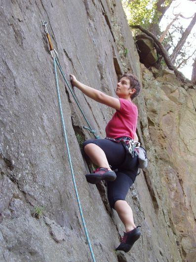 Ke koupačce přichází Milan a vyrážíme znovu do stěn. Využívám příležitosti a lezu onu šestku, co jsem šel za Radimem, na prvním. Velká radost! Super. Nika a Deny zatím šplhají Starou na prvním, stejně jako Milan. pak ještě Schody (4) a můj pokus o Prašnou I (7-), skončený z nedostatku odhodlání u druhého borháku. Na konec ještě Milan končí tam, kde my jsme začínali - na Nejistých římsách a já šplhám Krávu uzenou (7). Ten poslední metr je ale na mě moc. Po asi devátém pádu to vzdávám a stejně dopadl i Zahrada, který to zkouší na top rope. Úspěšný stejným stylem je nakonec Milan, pro mě tedy zůstává výzva do příště.