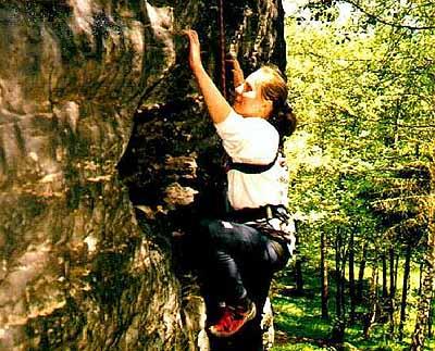 Přeskok mezi Dvojčaty, který letos Rybíz zpopularizoval na Lezec.cz (http://www.lezec.cz/clanek.php?key=1214), vloni skočil napřed on, poté na to šli prckové. Bára Beránková ho zvládla v pohodě, Matesovi Turkovi ovšem poradil, aby nechal ruce nahoře, a dopadlo to tak, jak vidíte na fotce.