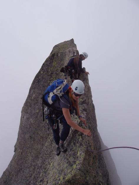 Jani lezla za Bidlem a Beruškou všechno možné a nejtěžší byl Vinciho hřeben (VI) na předvrchol Cengala.