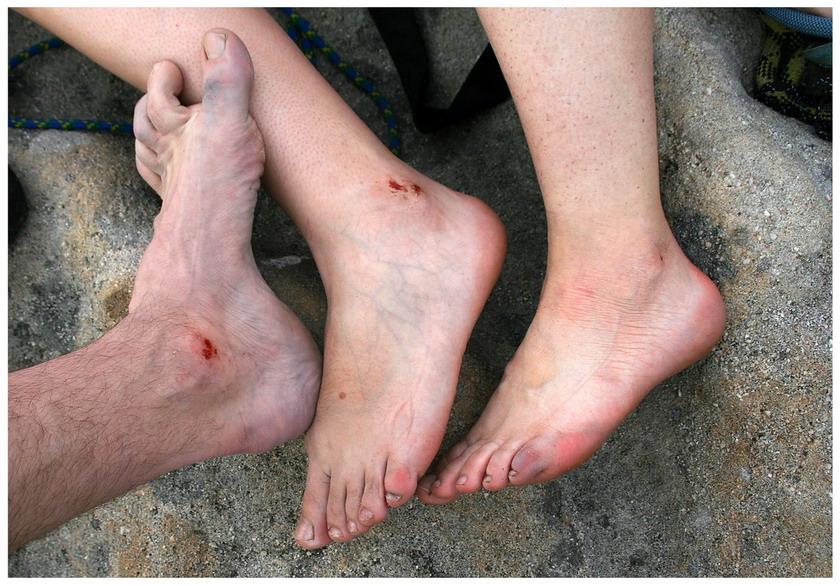 Rajbákový koutek Brto s trochou funění a morální podpory spolulezkyň dobyl, pošlapal při stavění Evuše břicho i ramena a už byl na vrcholu, my pak chvíli po něm. Nahoře jsme neodolali a nafotili první snímky pro Sejkovu plánovanou outdoorovou porno stránku - ovšem pouze s lehkým erotickým nádechem, protože dole bylo plno turistů. Avšak lezci žádní. Trochu nám to přišlo divné, ale pak jsme si řekli že asi všichni jeli lézt do Arca a pískařská klasika že většinu překližkářů netáhne.