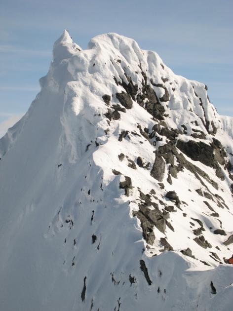 Hřeben Skagastol, uprostřed V-zářez se žlebem