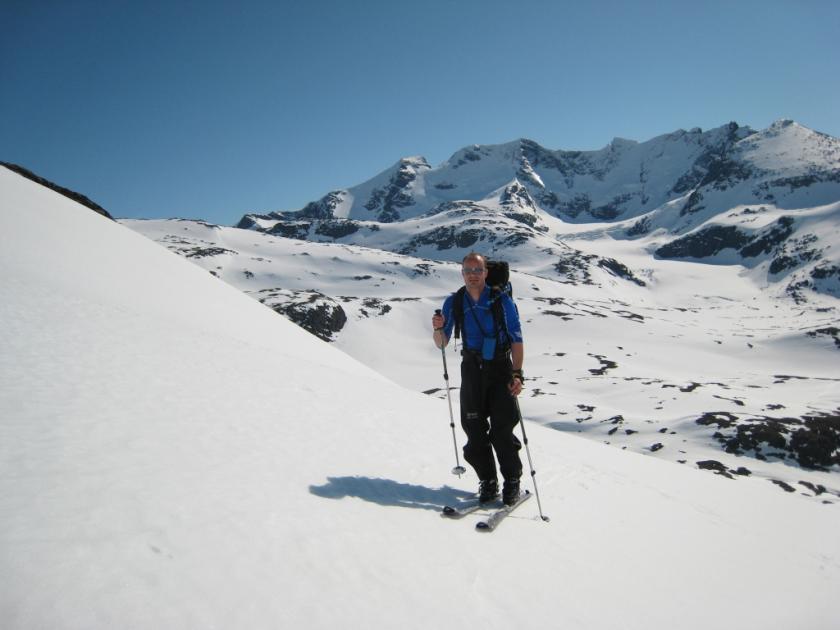 Fannaraaken byl jen náš. Počasí opět zaskočilo. Modrá obloha, bezvětří. Potíme se jak koně. Překonat jedenáct set metrů převýšení nám trvá dobrých pět hodin. Nahoře nevěřícně zíráme na plyšového zajíčka, kterého někdo naschvál postavil na vrcholovou převěj, aby vítal vyřízené skialpinisty přitroublým úsměvem. Sjíždíme rozbředlým pomalým firnem, sluníčko sluní, johoho, to jsou pak večer spáleniny jedna báseň.