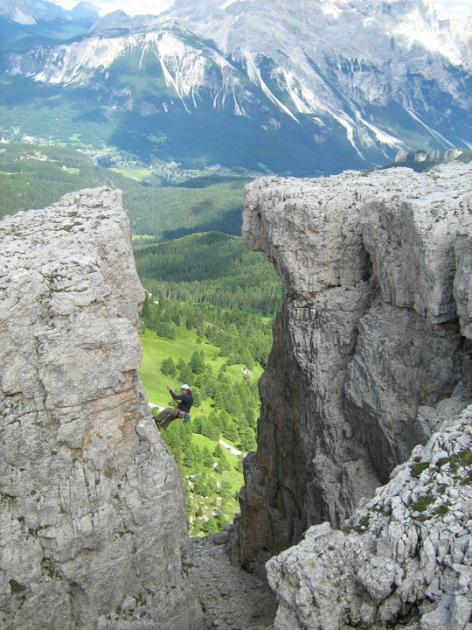Oblast Cinque Torri, impozantní východní stěna severního vrcholu trojvěže Torre Grande. Stěna je ve své prostřední třetině převislá a jediným slabším místem stěny se zdá být markantní kout, který sám o sobě působí dosti obtížně a navíc ve třetině stěny končí. Východní stěna Torre Nord di Torre Grande byla až do konce padesátých let panenská a nevedla v ní žádná cesta. Zkoušeli ji zdolat někteří dobří lezci, ale bez úspěchu. Uspěli až Matti Jokinen a Walter Gstrein roku 1959. Po 48 letech od prvovýstupu přišli s touto klasickou cestou obtížnosti VII- změřit své síly také Jizva s Bártem...