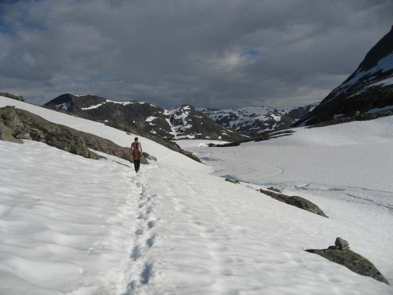 U výstupu na Blaanebbu se zase nejdůležitější sdělení skrývá v radě traverzovat až pod západní vrchol. Pro místní znalce žádný problém, ovšem cizinec není našinec, že? Podle pokynů v průvodci jsme se usilovně vydrápali směrem do markantního sedla, abychom zjistili, že jiné sedlo mělo být ještě markantnější. Druhý den jsme proto přehodnotili plány, když průvodce zcela bezelstně přiznal, že některá družstva se na (asi kilometrový) nástup pod Store Vengedalstind navazují, neboť najít cestu není vždy snadné.