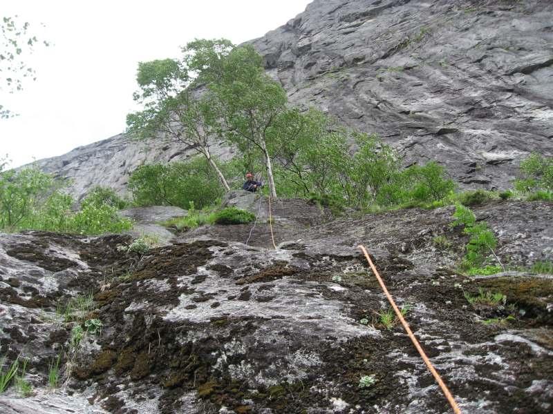 Při výstupu na Bispen jsem zaměnil východní hřeben za vedlejší horu Kongen. Cestou na vršek jsme se proto stali autory významné varianty, kterou jsme raději rychle zapomněli. Aspon že se nám cestou podařilo sebrat dvě epesní prchačky, dva vklíněnce a karabinu.