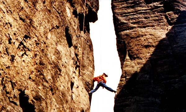 Ondra: šířka jeho roznožení je na komín akorát, ruce nestačí