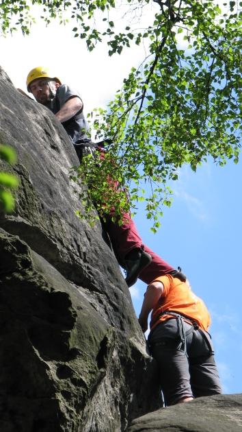 tuhle jsme byli na obrvégrech, a s Evuschou jsme lezli hřebenovku (VI, 1904) na Libereckou věž. při stavění byla tato křehká dívka spodním článkem stavění. při návratu ze skal se pak s Tomasem a Jiříkem stavila v hospodě na pár piv, pila velká piva a každý z chlapců vypil několik malých piv