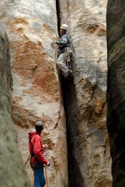 O Alešákových spárových úchylkách jsem věděla, proto jsem zvolila první den ve společnosti Hrba a Mirka. Hrb byl svědomitě připraven - byl vybaven vlastnoručně vybraným seznamem ohvězdičkovaných cest. S důvěrou jsem se tedy odevzdala do jejich rukou.