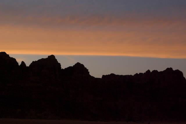 11. den dopoledne se Viktor vrací z Petry, odpoledne lezeme Divers-tissement (5, 4-, 6b, 6b, 5, 4, 4) na Jebel Asad. Začátek je boj o život ve vertikálním písku, v horším jsem nelezl, pak ovšem 3 nádherné délky; převislá koutová širočina (málem z ní vypadávám), dunivý sokolíček (málem ho ulamuji), další spára, koutová trhlina, ani prsty se mi do ní nevejdou (prý 6b, reálně spíše za 7a, 2 kroky řeším způsobem A1, Viktor to na druhém také nedává čistě) a nádherná koutová prstovka, no paráda.
