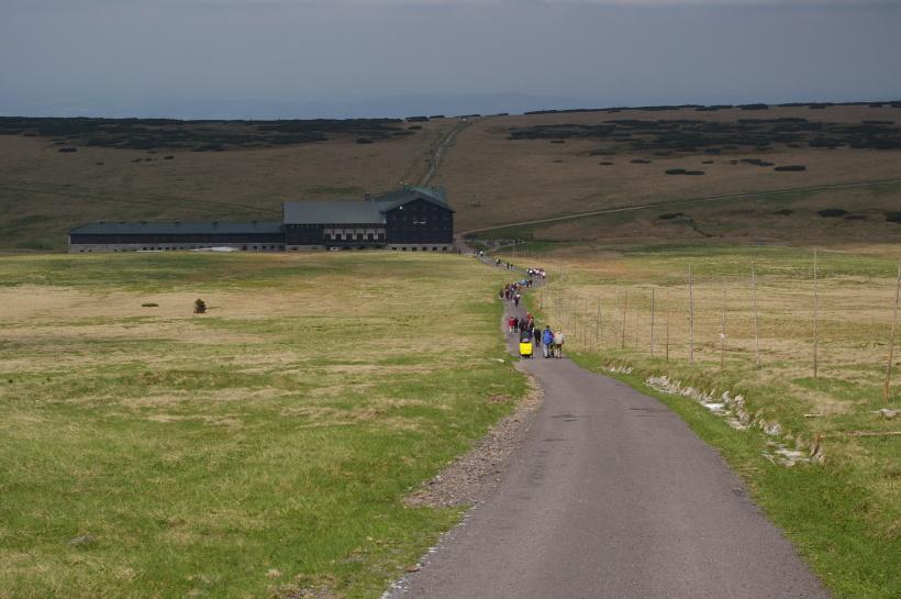 Obřad byl velmi dojemný, leckomu ukápla i slza (včetně samotné nevěsty, kterou už jsme viděli plakat vzteky při náročných sjezdech nebo výstupech, ale v takto romantické poloze ji opravdu neznáme)a po té se celý průvod vydal zdolat nedalekou Sněžku ještě ve svatebních oděvech (ano ano, Kniha tam vylezla ve své dlouhé bílé princeznovské sukni a botičkách, pouze ta goretexová bunda kazila výsledný dojem).