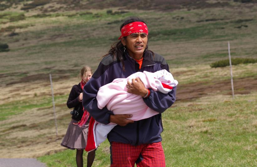 Obřad samotný se konal před kapličkou pod vrcholem Luční hory a všichni hosté bez rozdílu tam museli vylézet po svých, ať už startovali v Peci nebo ve Špindlu. Někteří málem obřad nestihli (Čuňas který už posledních deset let jenom pije, jí a jezdí na motorce například po cstě málem bídně zhynul, neboť není na takový pohyb vůbec zvyklý). Jiní tam museli vytlačit kočárky a našli se i tací, kteří přijeli na kole s dítětem ve vozíku (ano, hádáte správně, takový blázen je jen jeden a je to Hoe).