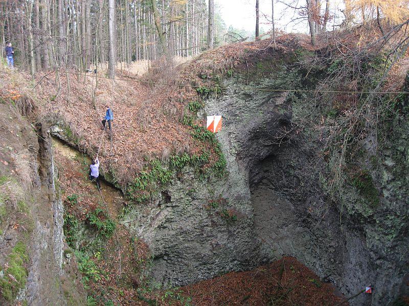 Některé kontroly byly lezecké, ale drtivá většina byla jednoduchá: prusíkování, slaňování, lézt se nemuselo. Začali jsme s Bárou na velké mapě na východ o Příhraz a pozdě odpoledne jsme se přesunuli do příhrazských údolíček. Na velké mapě jsme drželi krok s chachary ostravackimi, po cestě do Příhraz jsme potkali Deny s Pionýrem, kteří zvolili opačný postup. To byste nevěřili, jak jsou údolíčka horem dolem pádem příkrá.