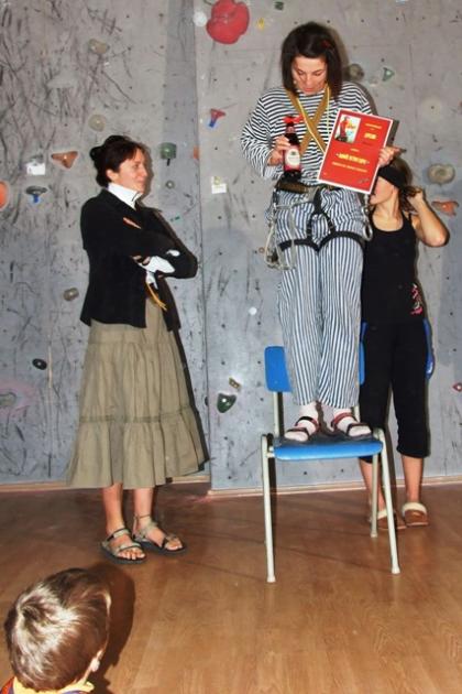 V kategorii děvčat obdržel nejvíc hlasů Beruščin pruhovaný outfit, doplněný o kšandičky a klobouček. Nejhistoričtější ale byla stejně Barbucha, jejíž účes vzbuzoval opravdové úžasy. Bára zase nepodcenila doplňky, což jí vyneslo třetí místo (kdo ví, co čekala od úvodního boulderu, když se do něj vybavila mačkami i papučemi - nejspíš mixové lezení).