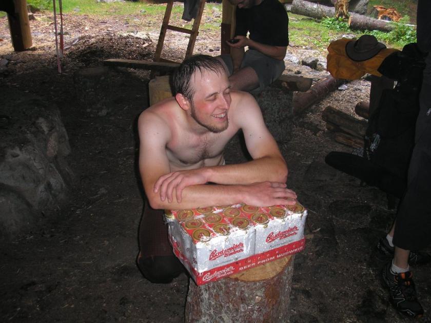 Při balení vyvstávají otázky, jako kolik friendů, smyček, piva a jiných nesmyslů bude potřeba. Nakonec jen dojít na nádraží a nočním vlakem do Popradu, autobusem do Lysé Poljany a chvíli po osmé už šlapeme směrem na Táborisko. Výšlap je dlouhý a nudný, navíc začíná pršet. Okolo poledního dorážíme na Táborisko. Altánek je nově postavený, dokonce i oheň hoří. Stavíme stany, vaříme, posedáváme. Povídání občas rozsekne rána, když se někdo elegantně praští čelem o plechový nácuc komínu nad ohništěm. Do konce pobytu se snad praštili všichni. Někteří projistotu vícekrát. Jako cestu si na zítřek necháváme od Goba poradit "spáru" na Velický štít. To je ta, za kterou Renča dostala blbost roku. Cíl je jasný, vrátit se dřív než Renča.
