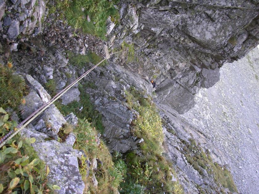Jako dva nováčci bez instruktora jsme si pěkně zalezli se vším všudy. Hledání nástupu, cesty, sestupu, a tak vůbec. Byli jsme dost pomalí. Nejvíce jsem ztráceli při hledání nástupů a dost času nám také zabralo budování štandů. I když jsme lezli střídavě, přiliš času jsem tím neuštřili. Matroše jsem použili tak půlku, předat si pak batoh a boty zabralo dost času. Pokud tedy polezete střídavě, asi bude lepší pokud bude mít každý svůj minibatůžek. Pokud člověk neleze volně (alespoň krátká) dvojková místa nemá šanci. Trochu mě mrzí, že bez instruktora jsme neměli možnost zkusit si nějakou těžsí cestu.